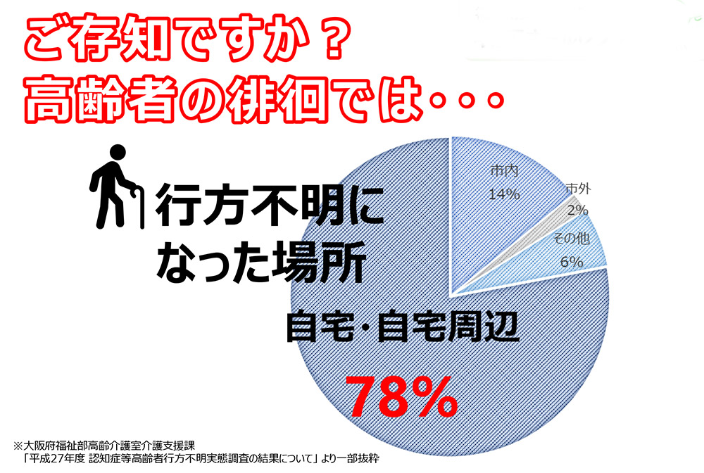 現在、自宅や自宅周辺で徘徊による行方不明になる高齢者が増えています